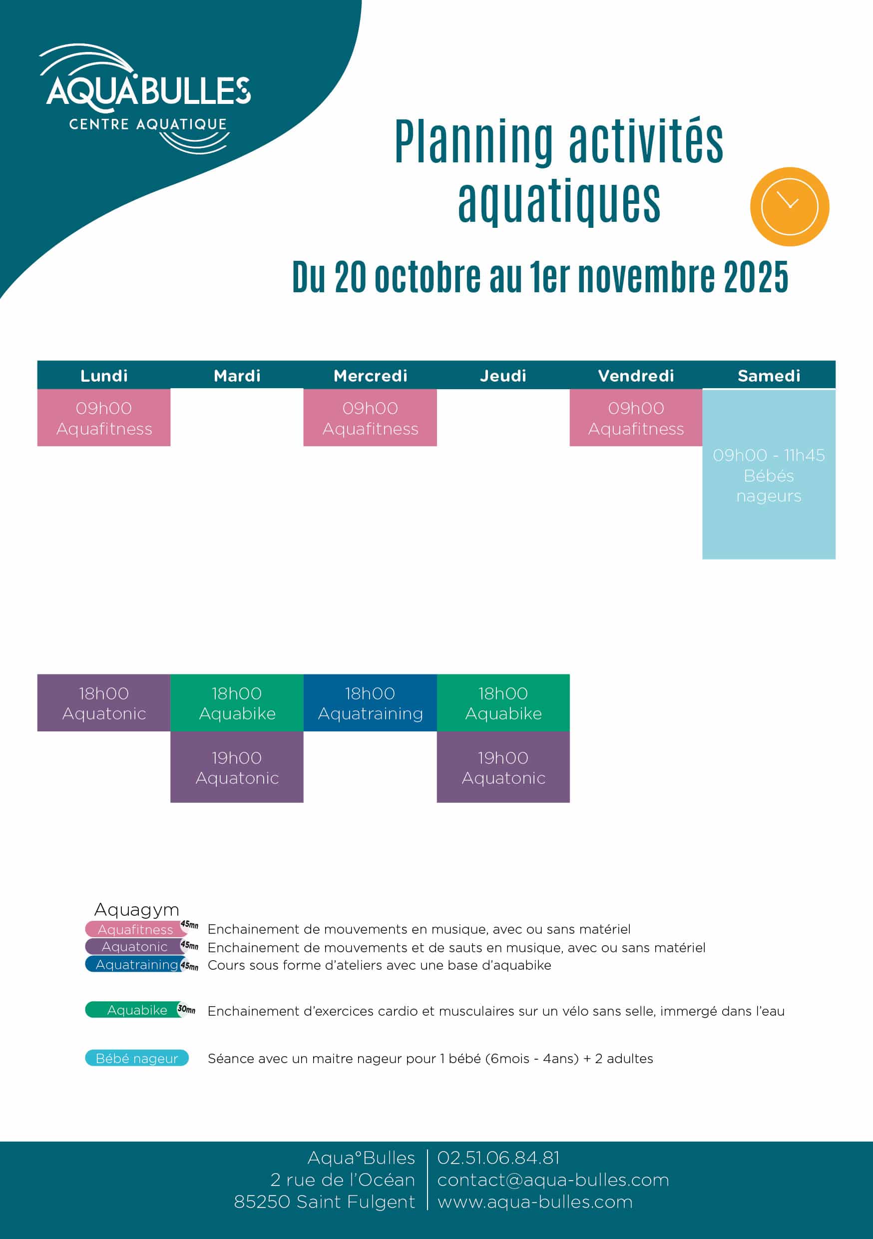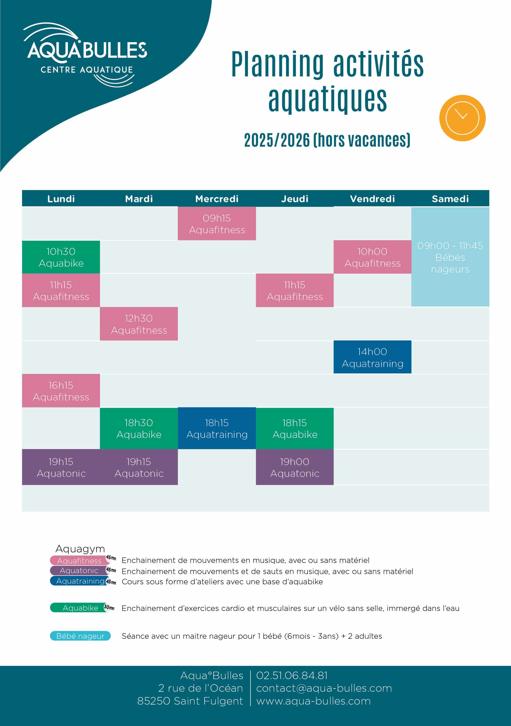 Pass Acti°Bulles : 50.90€ par mois. Accès illimité aux cours d’aquagym, d’aquabike, d’aqua stand up, de fitness en salle + espace détente + piscine + Lit hydromassant.